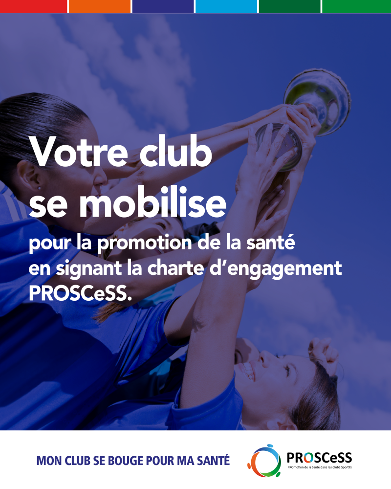 En vous lançant dans la démarche PROSCeSS, vous aurez un impact positif sur la santé de tous les membres du club, qu’ils soient pratiquants, entraîneurs et dirigeants, et vous améliorerez l’image du club au niveau local.