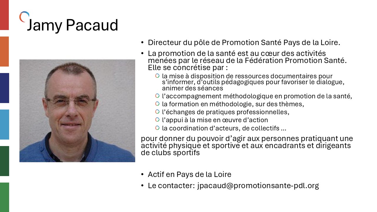 Cette formation est dédiée aux cadres du sport, aux professionnels des Maisons Sport-Santé, du secteur de la Santé publique et des collectivités territoriales, pour aider les clubs sportifs à devenir des lieux de vie et de santé. Les participants découvriront le projet PROSCeSS et sa démarche, les composantes clés pour accompagner les clubs, ainsi que des outils pour diagnostiquer et fixer des objectifs. La formation inclura des mises en situation, des échanges avec des partenaires, et une collaboration avec le réseau territorial. De plus, nous jouerons à nos jeux de santé, disponibles dans l'onglet jeux santé, pour renforcer l’aspect ludique et éducatif de la formation.